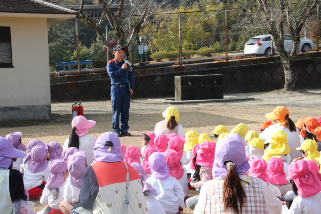 給食室から出火したという想定で、0歳児から年長さんまで全園児が